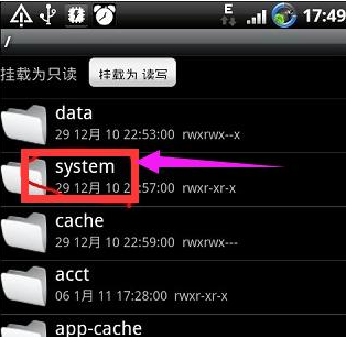 找到并打开文件system