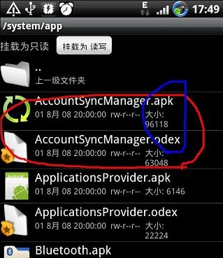 里面就是系统程序了,每个程序有两个文件,apk、odex,可以都删也可以保留apk放到sd卡里以后要了装