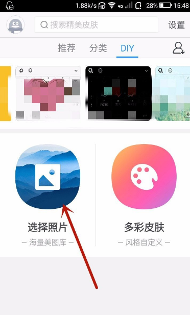 在皮肤中心选择“DIY”,点击“选择照片”如图所示