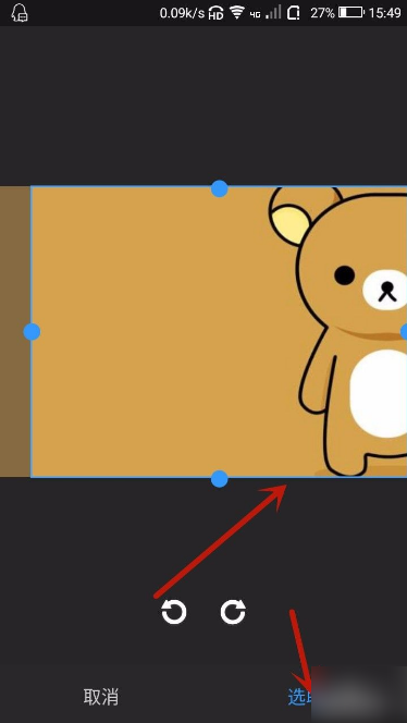 在手机相册里面打开一个自己喜欢的照片,对照片进行缩放处理,然后点击“选取”