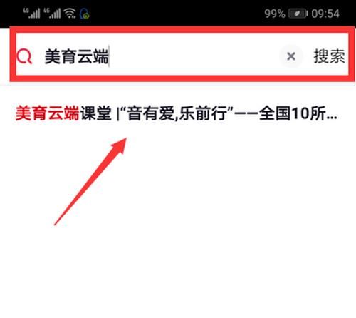 4、返回主界面,在搜索栏输入“美育云端”点击搜索。