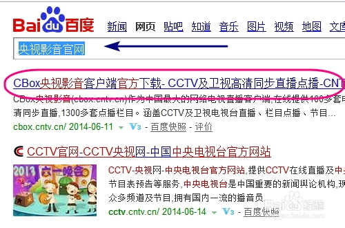 首先,我们要选择官方的正版下载使用,如果你的是非正版,那么先卸载,然后百度搜索“央视影音官网”搜索,点击*个进入。