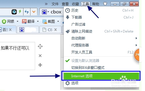 如果直播的时候,弹出信息框提示脚本错误,那么就可以清理下ie缓存来解决,首先点击浏览器“工具”,然后选择“internet选项”