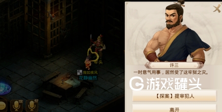 3.找许三,许三被抓到监狱里了,所以去监狱找他,监狱入口在衙门上方