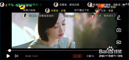 之后我们需要做的是,我们点击顶部的弹幕按钮,把弹幕打开即可看到网友发的弹幕即可,对弹幕进行一些设置,我们点击顶部右上角的“...”,即可哦。