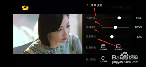 最后我们需要做的是,在弹幕设置界面,我们调整弹幕的位置,以及透明度,还有弹幕的显示区域。
