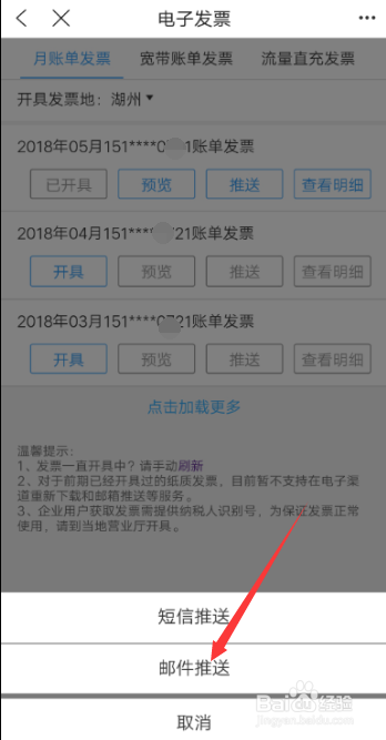 8.比如小编选择邮件推送,设置邮箱信息后,点击确定推送按钮。然后前往邮箱查看收到的发票邮件。这样发票就被下载下来啦。