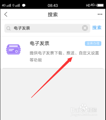 3.点击*上方的搜索框,在搜索内容中输入【电子发票】,然后点击右侧的搜索,如下图所示。