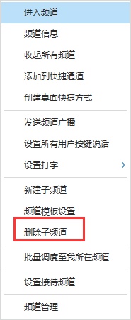 6.所以频道创建者只能删除创建频道的子频道,不能将整个频道删除。子频道的删除方法也非常简单,右键需要删除的子频道后选择菜单栏的“删除子频道”即可。