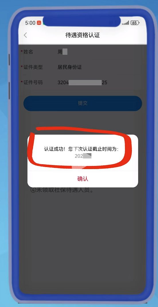 6、拿起手机进行人脸识别,认证成功你将看到本次认证成功有效时间。