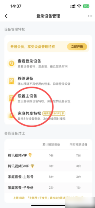 在登录设备管理中,可以看到在家庭共享特权中,看到可分享给8台设备只要将账号密码分享给共享的人,授权登录即可