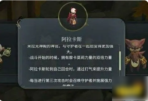 阿拉卡斯:与魔力值成正比,打僵持战适用,类似于汪大东这种,遇强则强。后期去污染的起源之地和他一起打黑龙升级角色,属性看图不解释