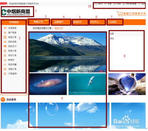 Ø 区域1:首页,用户点击【中烟新商盟】回到主页面。