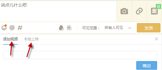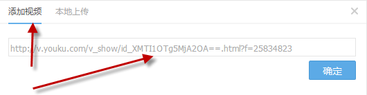 2、点开上传视频按钮有二个方式上传视频,一个本地上传,一个是添加网络视频地址。