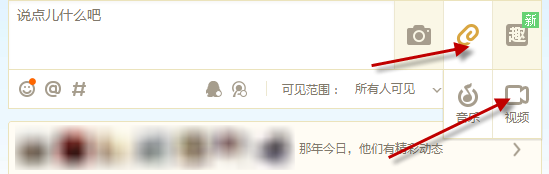 1、打开QQ空间说说,在输入文字框右边第二个按钮,打开它,会出现上传音乐按钮和上传视频按钮。