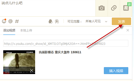 2、插入视频后,配些文字然后就可以发表视频说说了。