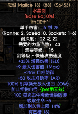 要求:剑、斧、单手钉锤、连枷类白色武器 2凹槽(专业术语会说2s,s=socket,以后就能看懂了!2s就是2个凹槽的意思)