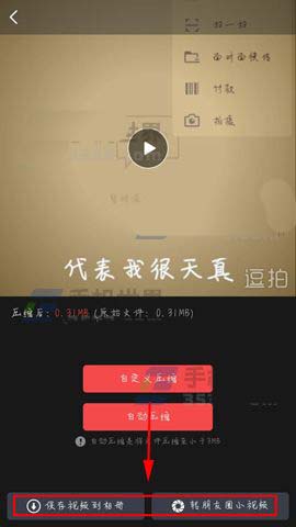 4)然后点击【压缩小视频】功能,最后我们点击下面可以选择将视频保存到手机和发送到朋友圈中。(如下图)