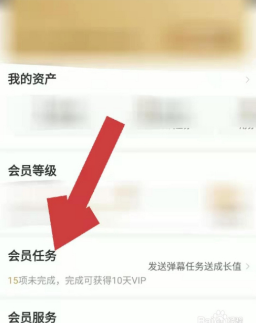 4.在我的VIP会员页面中,点击会员任务,进入爱奇艺会员任务页面。
