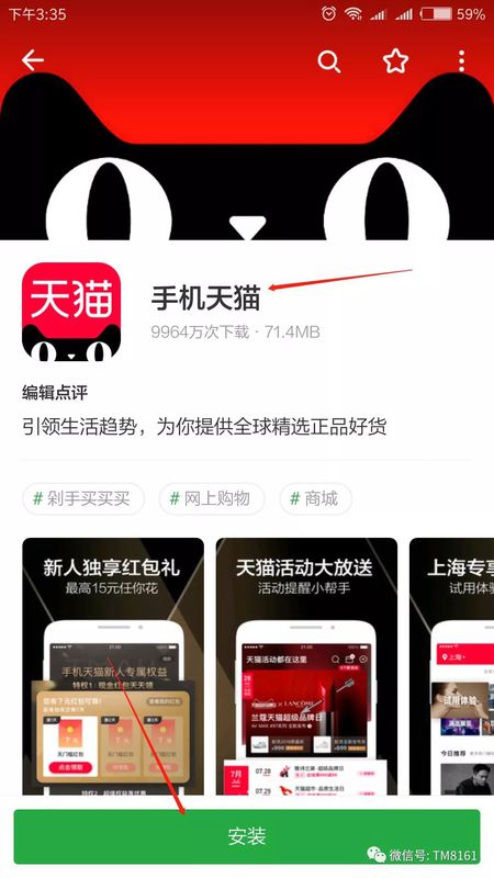 1、在应用中心搜索下载‘’手机天猫‘’APP并且安装;