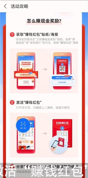 再点击支付宝首页【扫一扫】图标,扫描纸上二维码,按提示绑定,激活“赚钱红包”,