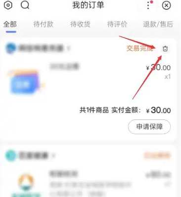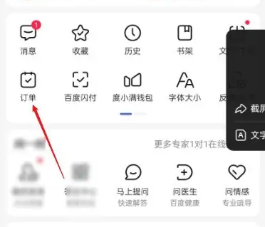 打开手机上的百度APP,点击右下角我的。在个人中心界面,点击左侧的订单。选择订单,点击右上角删除即可。