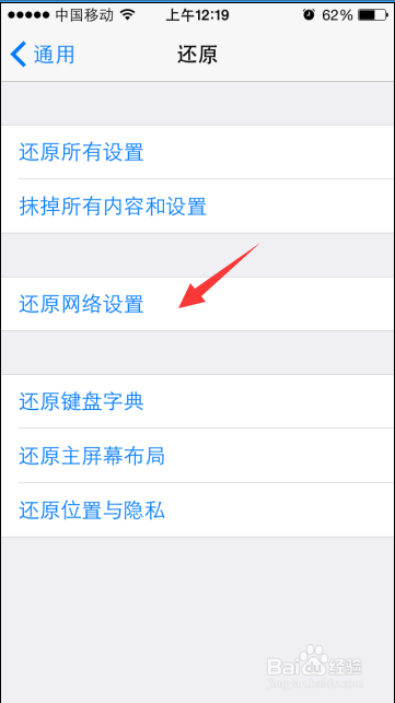 依次点击设置、通用、还原、还原网络设置的路径按钮,进行还原一下即可。