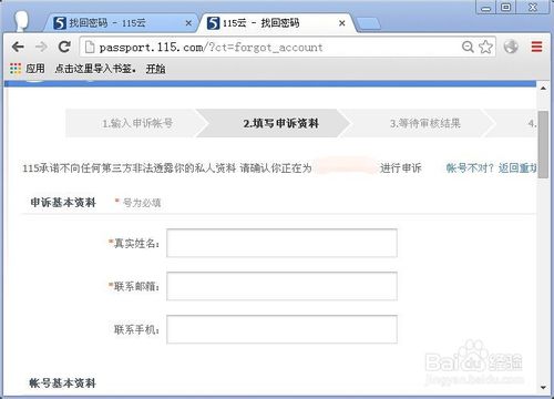 最后一种找回密码方式比较麻烦一点,通过115网盘的申诉方式来进行找回密码,申诉时需要提供你的115帐号、真实姓名、证件号码以及上传你证件等注册资料,申诉方式能不能找回你的密码,就要看你填写一些注册时的资料准确不准确了。