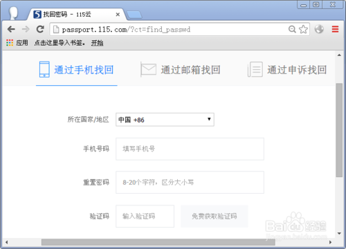 *简单方式的找回115密码方法当然是用手机号码了,我们只要点开【通过手机找回】,输入当时注册115网盘用的手机号码,然后收取一下手机中接收115短信验证码就可以重设密码了,这种方法是*简单直接的。