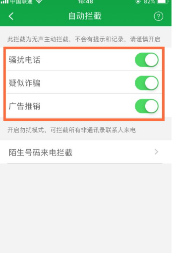 把里面的“骚扰电话”、“疑似诈骗”、“广告推销”全选上,就能设置成功了。