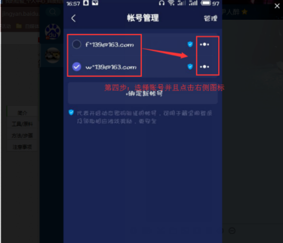 账号解绑网易将军令步骤四:用户进入账号管理界面以后,选择需要解绑的账号。然后点击旁边的三点图标。