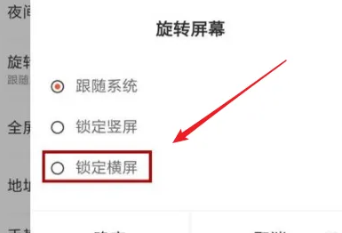 进入旋转屏幕页面,点击【锁定横屏】即可。