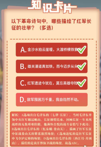 题目2:以下革命诗句中,哪些描绘了红军长征的壮举?(多选)