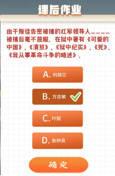 第8题:由于叛徒告密被捕的红军领导人___被捕后毫不屈服,在狱中著有《可爱的中国》、《清贫》、《狱中纪实》、《死》、《我从事革命斗争的略述》。