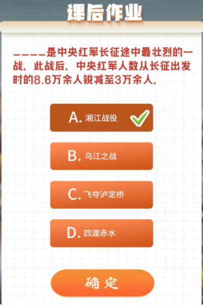 第3题:___是中央红军长征途中最壮烈的一战,此战后,中央红军人数从长征出发时的8.6万余人锐减至3万余人。