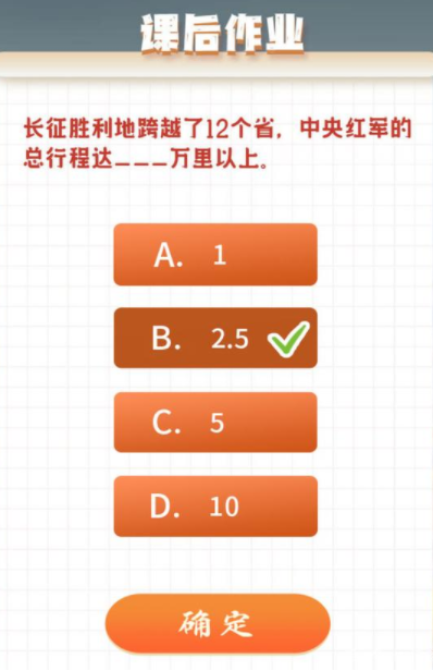 第4题:长征胜利地跨越了12个省,中央红军的总行程达___万里以上。