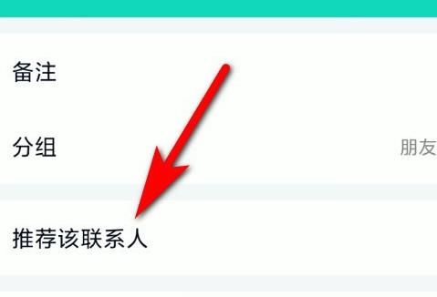 3、在设置列表中选择推荐该联系人。