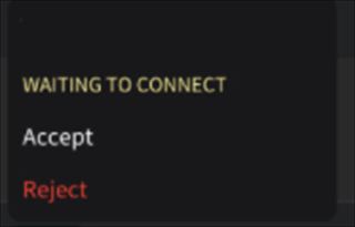 之后每次两个人都上线时,主界面电脑选项中,好友会出现在自己的电脑旁边,点击"Connet"发送请求。成功后主机会弹出提示框,白色"Accept"接受,红色"Reject"拒绝。