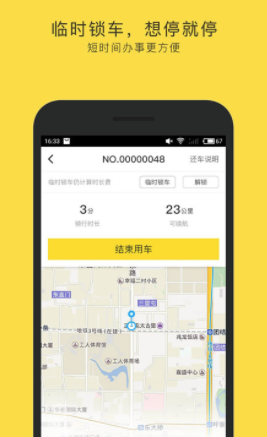 扫码开锁,关锁自动计费,app预约选车,智能导航,续航实时可见。