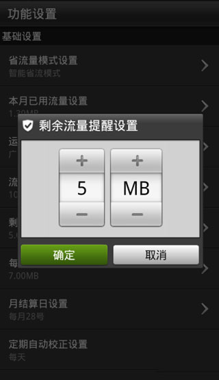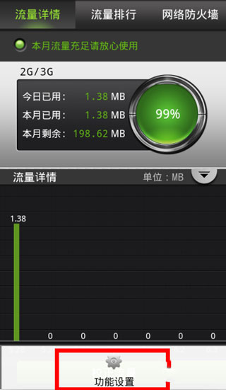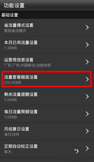 1、在功能设置页面,我们可以设置剩余流量额度的提醒