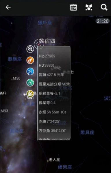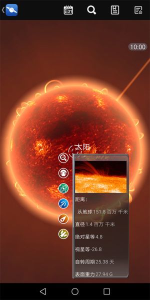 2、应用在操作方面,用户只需敲击屏幕中天空的某部分,就可获得所看到天体的有关情况,包括其距离和亮度