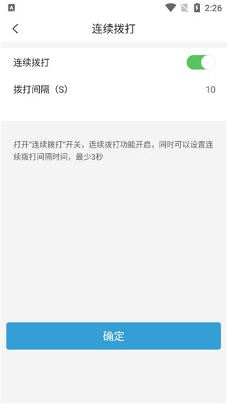 3、用户可自定义选择连续拨打和间隔拨打时间。