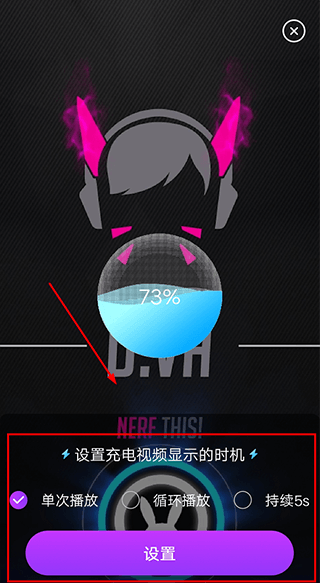 在选中的充电动画页面内,点击设置充电动画,并进行显示设置;