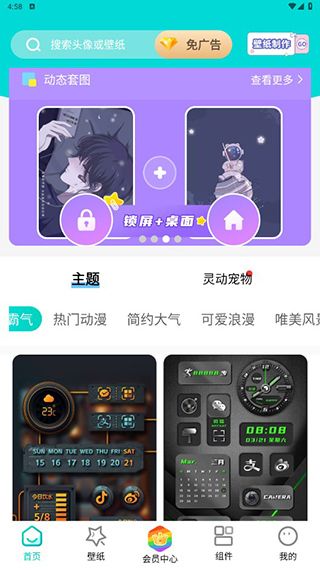 用户点击下方会员中心即可进入会员中心页面,开通会员即可享受免广告、会员壁纸等多个特权。