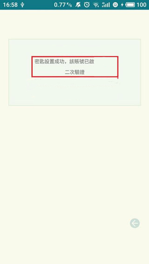 4、进入该应用的设置里开启双重验证,你将会得到一串英汉结合的密钥。