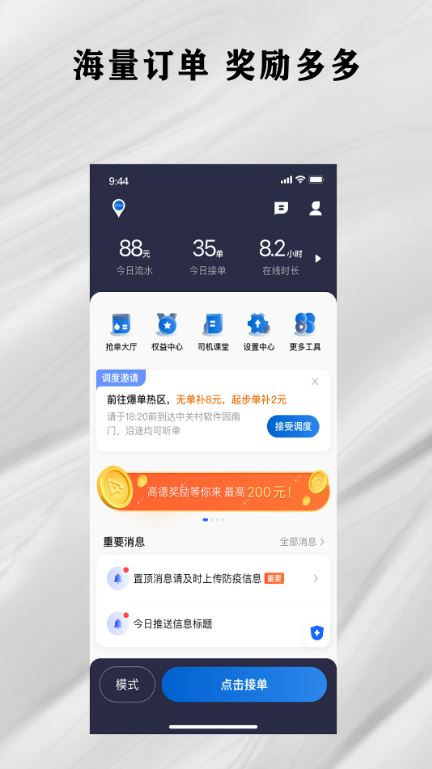 海量订单随时都能在线进行接单,更低抽成奖励丰厚。