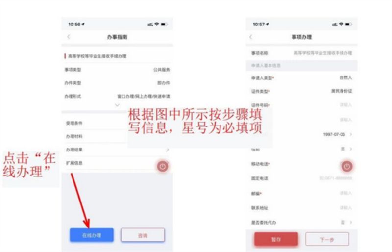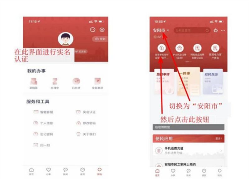 进行实名认证,切换为"安阳市",点击"高等学校等毕业生接收手续办理"