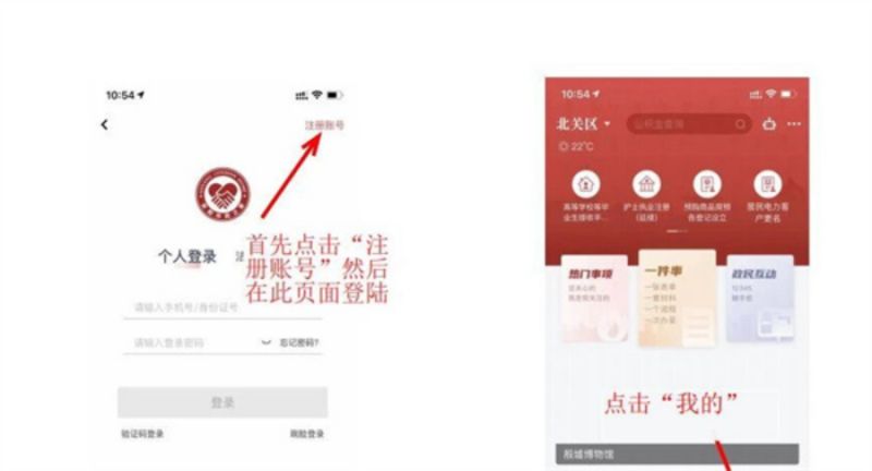 进入安馨办app,首先点击"注册账号",然后在此页面登录,点击"我的"