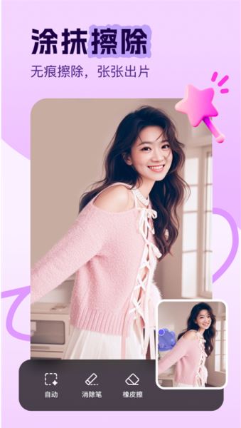 用户上传或者拍摄图片,通过擦除笔对擦除图片不想要的画面,橡皮擦可擦除消除笔进行擦除,擦除笔和橡皮擦的大小可以调整。