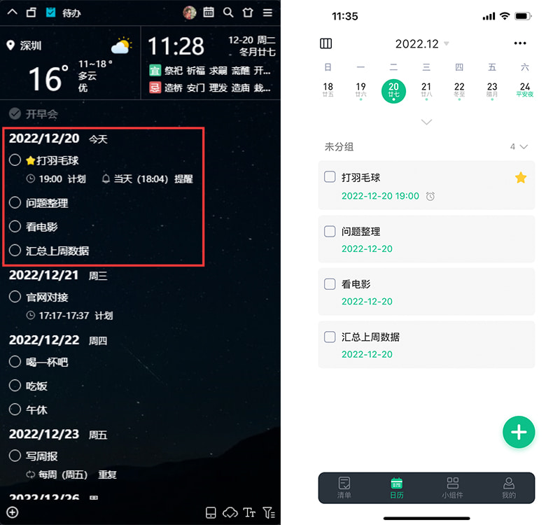 注意!如果登录了同一账号,待办没有同步到手机APP上,可以在清单模式下拉刷新或者是退出APP后重新进入。